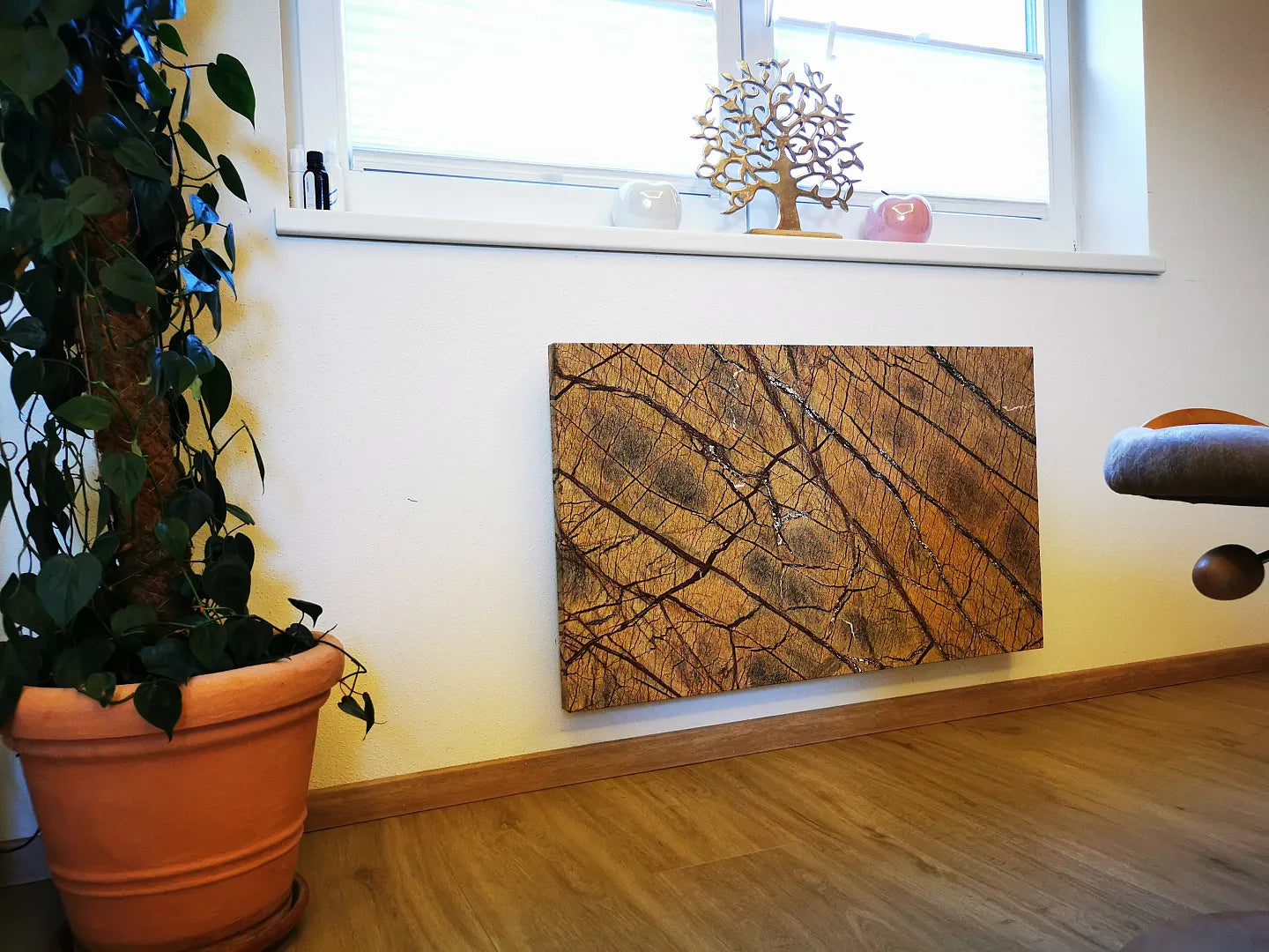 Ecostone verwarmt via stralingswarmte, net als de zon. De warmte wordt direct door muren, vloeren en meubels opgenomen en gelijkmatig uitgestraald. Het resultaat: een aangename temperatuur, zonder tocht of droge lucht.